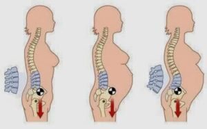 تشمل هذه الأسباب زيادة الوزن، والتغيرات الهرمونية التي تسبب ارتخاء الأربطة، وفصل عضلات البطن المستقيمة، والضغط العصبي والإجهاد العاطفي، وتغيرات في مركز ثقل الجسم.